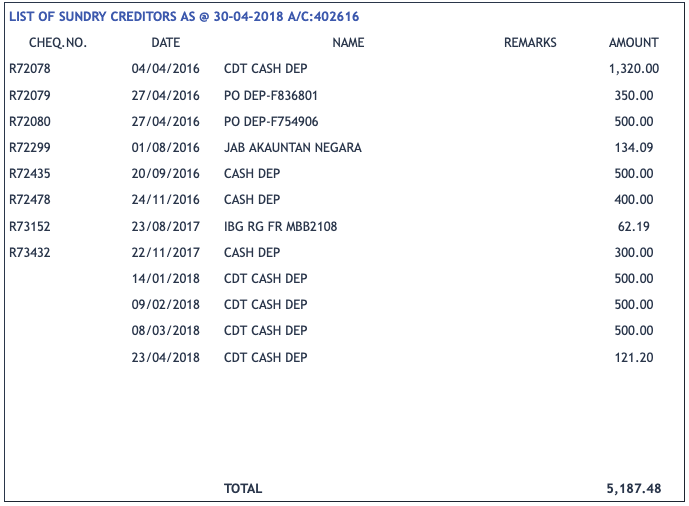 Bayaran-bayaran yang berkaitan adalah seperti dalam senarai di bawah. Para anggota yang terlibat diminta memaklumkan kepada KGSM Bhd dengan segera melalui telefon ( 05-253 7575 ) / SMS ( 013-5301650 – Pn. Yang Zuriyah ) / emel ( kopergg@yahoo.com ) supaya bayaran-bayaran tersebut dapat dikreditkan dalam akaun anggota masing-masing.
