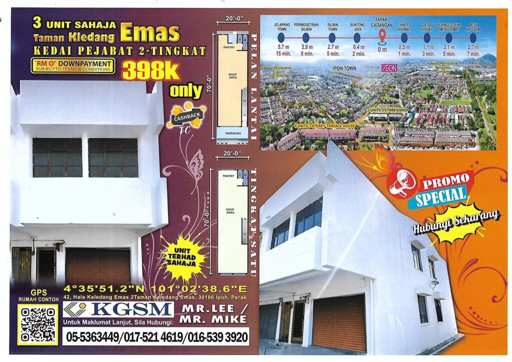 🏢 KEDAI PEJABAT 2 TINGKAT – TAMAN KLEBANG, IPOH